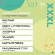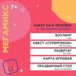 Пакет на 6 чел. В программу входит: боулинг (60 мин.) • квест «Супергерой» (35–45 мин.) • лазертаг (30 мин.) • 5D-кино • карта игровая (номинал 50 BYN) • праздничный стол (сеты на выбор)