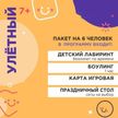 Пакет на 6 чел. В программу входит: детский лабиринт (безлимит по времени) • боулинг (60 мин.) • карта игровая (номинал 50 BYN) • праздничный стол (сеты на выбор)